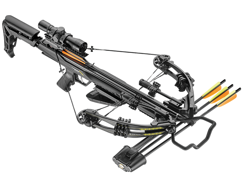 (оптика: 4×32)(усилие натяжения: 90кГ)(стрелы-3шт, опт.прицел 4×32, кивер, натяжитель, ремень, воск)