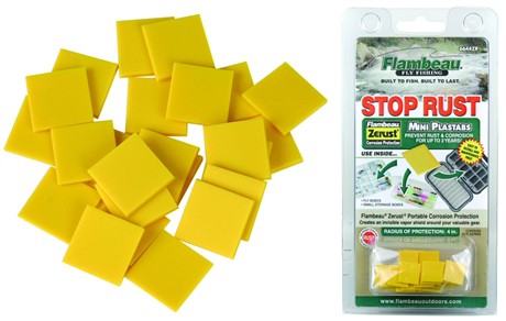 Набор из 10 мощных капсул Zerust, которые помещаются в любой ящик или сумку Flambéau и защищают металлические снасти от коррозии до 2 лет в закрытом объёме до 0,03 м³. Технология VCI (Volatile Corrosion Inhibitor) — пары безопасно обволакивают крючки, грузила, блёсны и ножи, предотвращая даже точечную ржавчину в условиях 100% влажности.