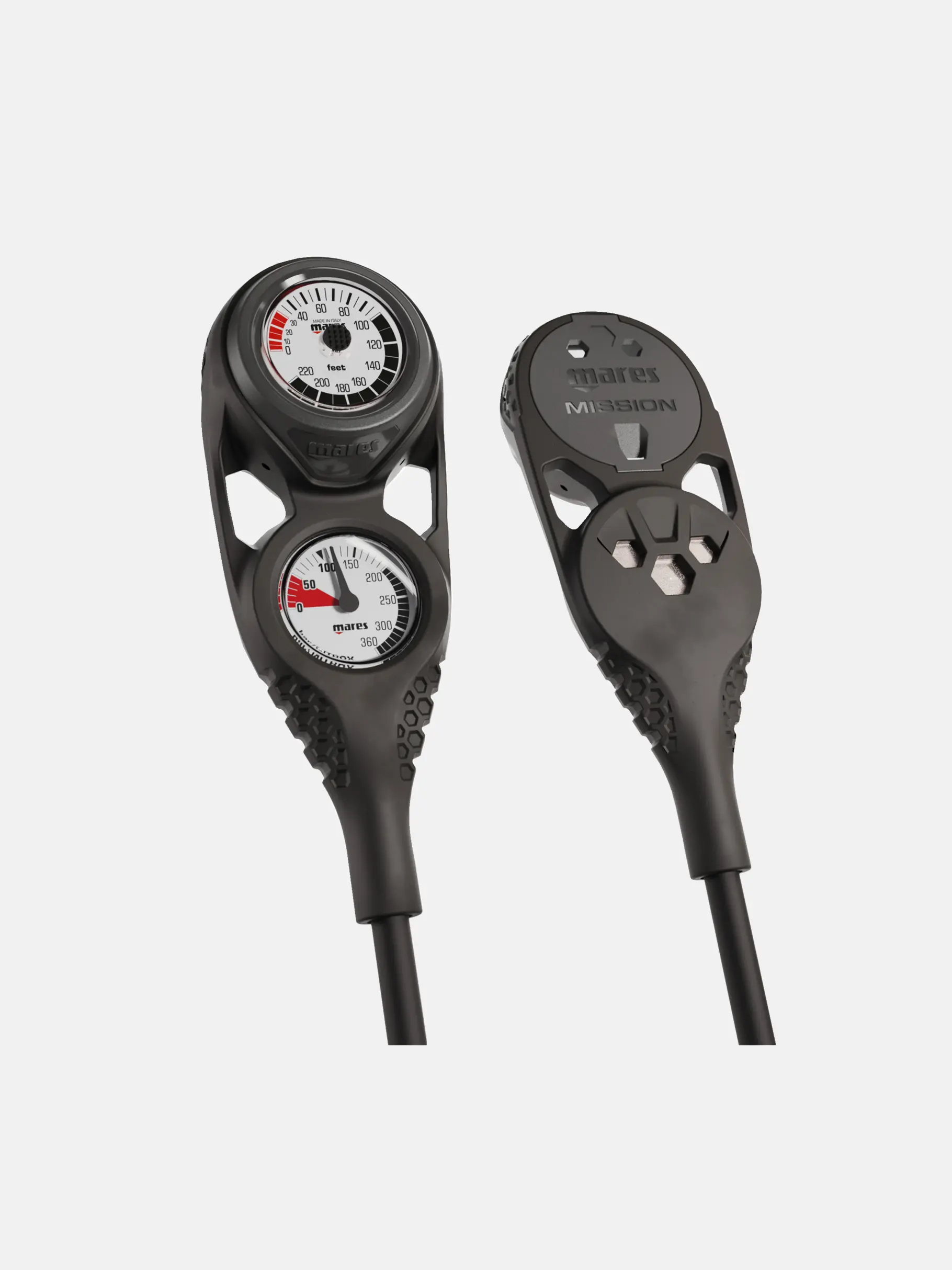 Испытайте точность на своих погружениях с консолью Mares Mission 2 — универсальным решением «всё в одном». Эта консоль объединяет манометр с латунным корпусом и глубиномер в масляной ванне, обеспечивая точную и интуитивно понятную информацию о погружении.