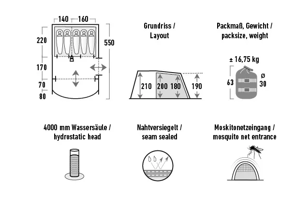 Палатка High Peak Garda 5.0 — это двухслойная туннельная палатка для 5 человек, разработанная для семейного кемпинга. Просторный тамбур с двумя москитными входами и полностью открываемым передним портиком обеспечивает удобное хранение снаряжения и вентиляцию. Высокая водонепроницаемость, продуманная система вентиляции и прочный каркас делают её надёжным выбором для различных погодных условий.