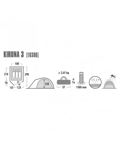 Палатка High Peak Kiruna 3 — это лёгкая купольная палатка для 2–3 человек, идеально подходящая для начинающих туристов, фестивалей и коротких выездов на природу. Благодаря компактному размеру, малому весу (2,65 кг) и быстрой установке, она удобна для транспортировки и использования. Обеспечивает комфортное пространство для сна и хранения вещей, а также надёжную защиту от осадков.