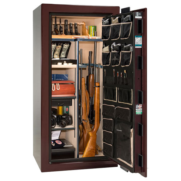 Сейф Liberty Lincoln 25 в цвете Burgundy Marble с фурнитурой Brass — премиальный сейф для хранения оружия и ценностей. Эта модель идеальна для владельцев среднего арсенала, которым важны надежность и эстетика.
