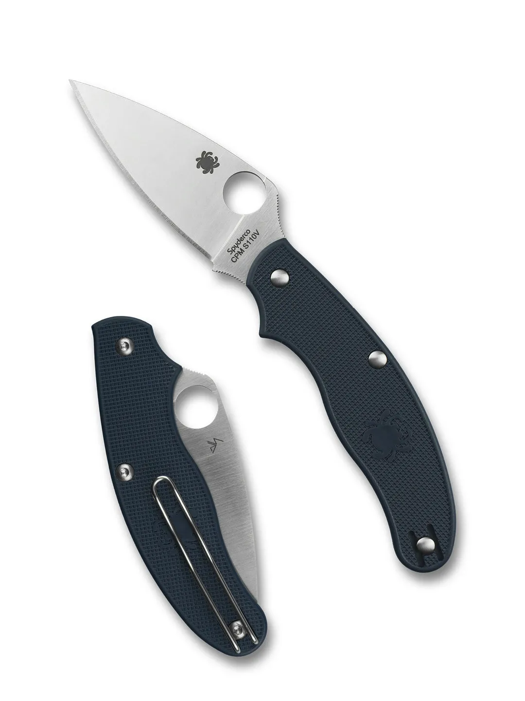 Рукоять выполнена из литьевого стеклонаполненного нейлона (FRN) фирменного тёмно-синего цвета, которым отмечены все ножи Spyderco из стали CPM S110V. Глубокая переставляемая проволочная клипса поддерживает ношение tip-up, слева или справа, обеспечивая быстрый доступ.
