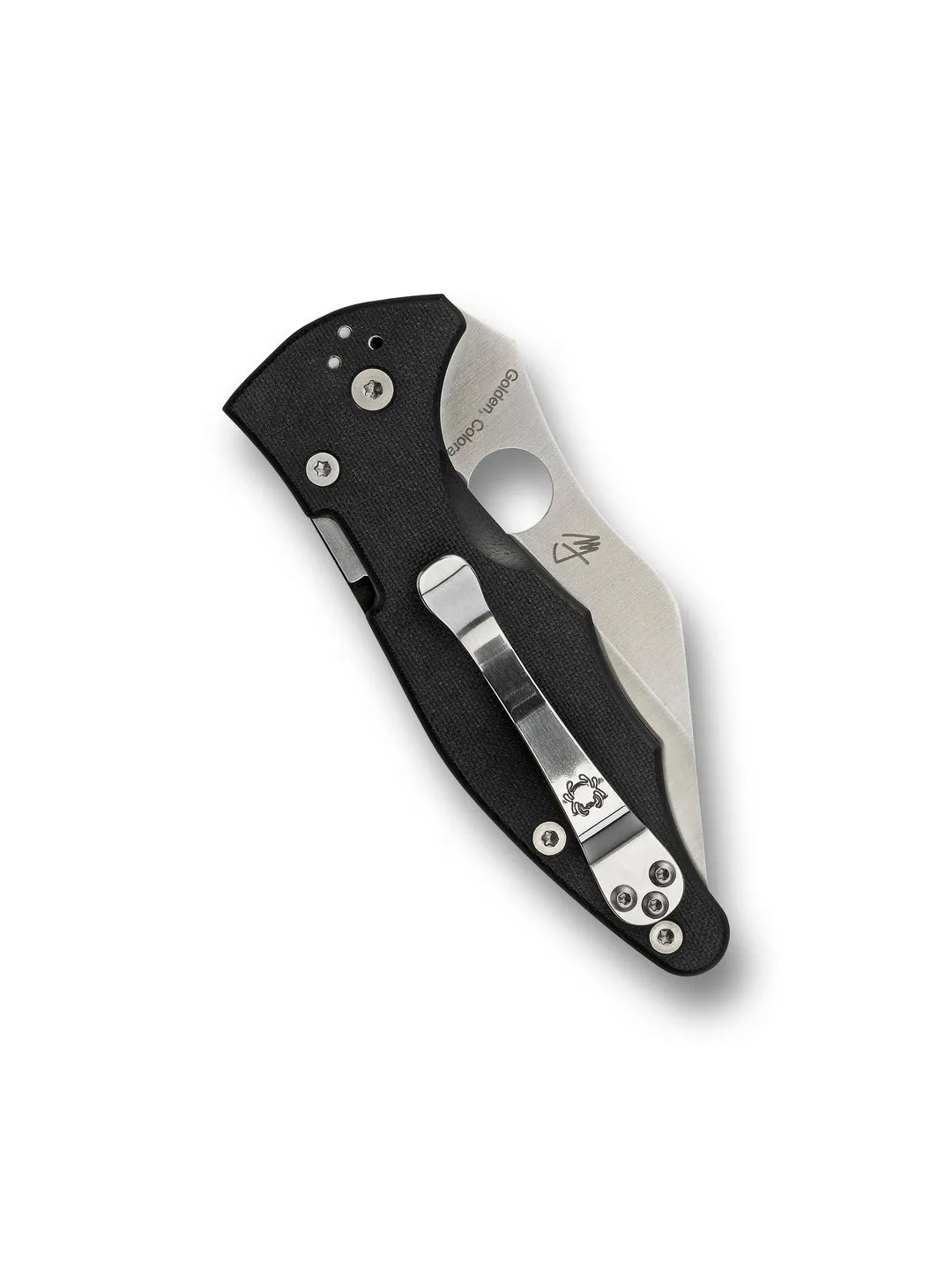 Рукоять с открытой спинкой выполнена с вложенными лайнерами из нержавеющей стали, которые формируют основу надежного замка Compression Lock®. Накладки из текстурированного G-10 обеспечивают надежное сцепление, а четырехпозиционная клипса позволяет настроить ношение ножа под любые предпочтения.