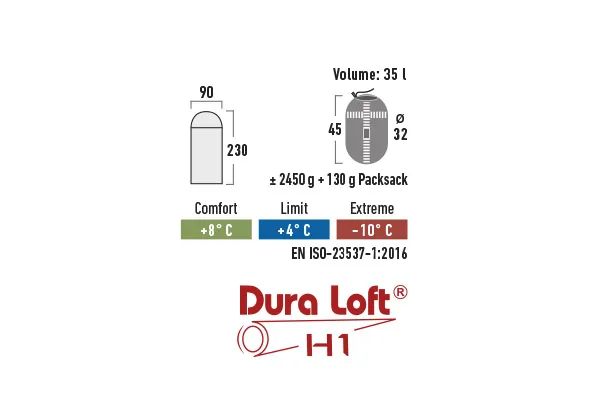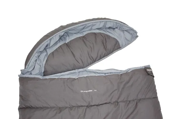 Просторный спальный мешок-одеяло DUNDEE 4 для прохладной погоды. Подходит для роста до 200 см. Двусторонняя молния с Velcro-клапаном для вентиляции и состёгивания. Покрытие Bionic Finish Eco защищает от влаги. Утеплитель DuraLoft 180 г/м² для комфорта в прохладные ночи. Чехол объёмом 12,5 л в комплекте.
